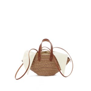 Straw bag with removable pouch.
